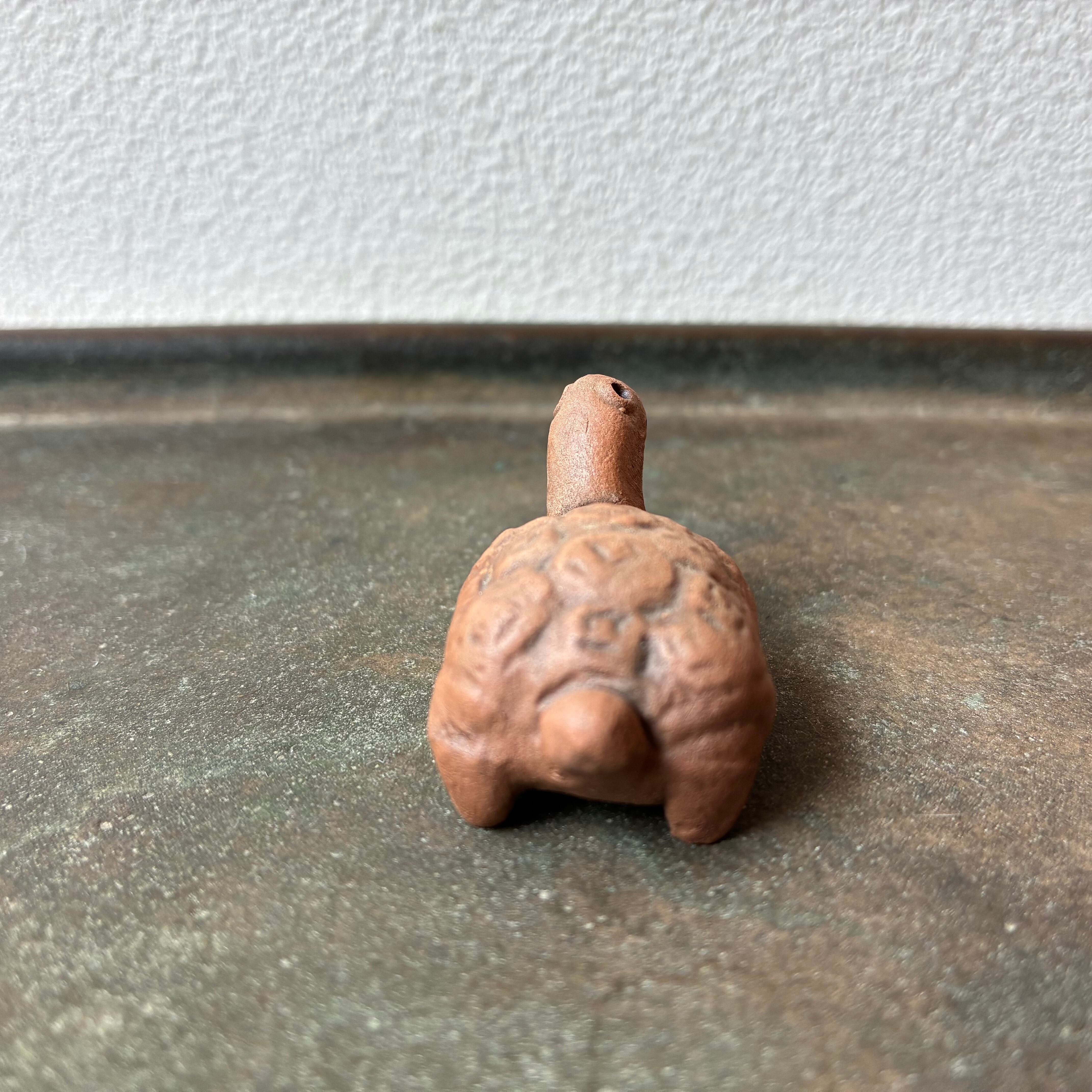 こちらのミニチュアの亀さん、とーっても小さいのですが、モコモコしたような甲羅、にっこり笑った表情、小さな体からあふれる愛嬌にとても癒されます。