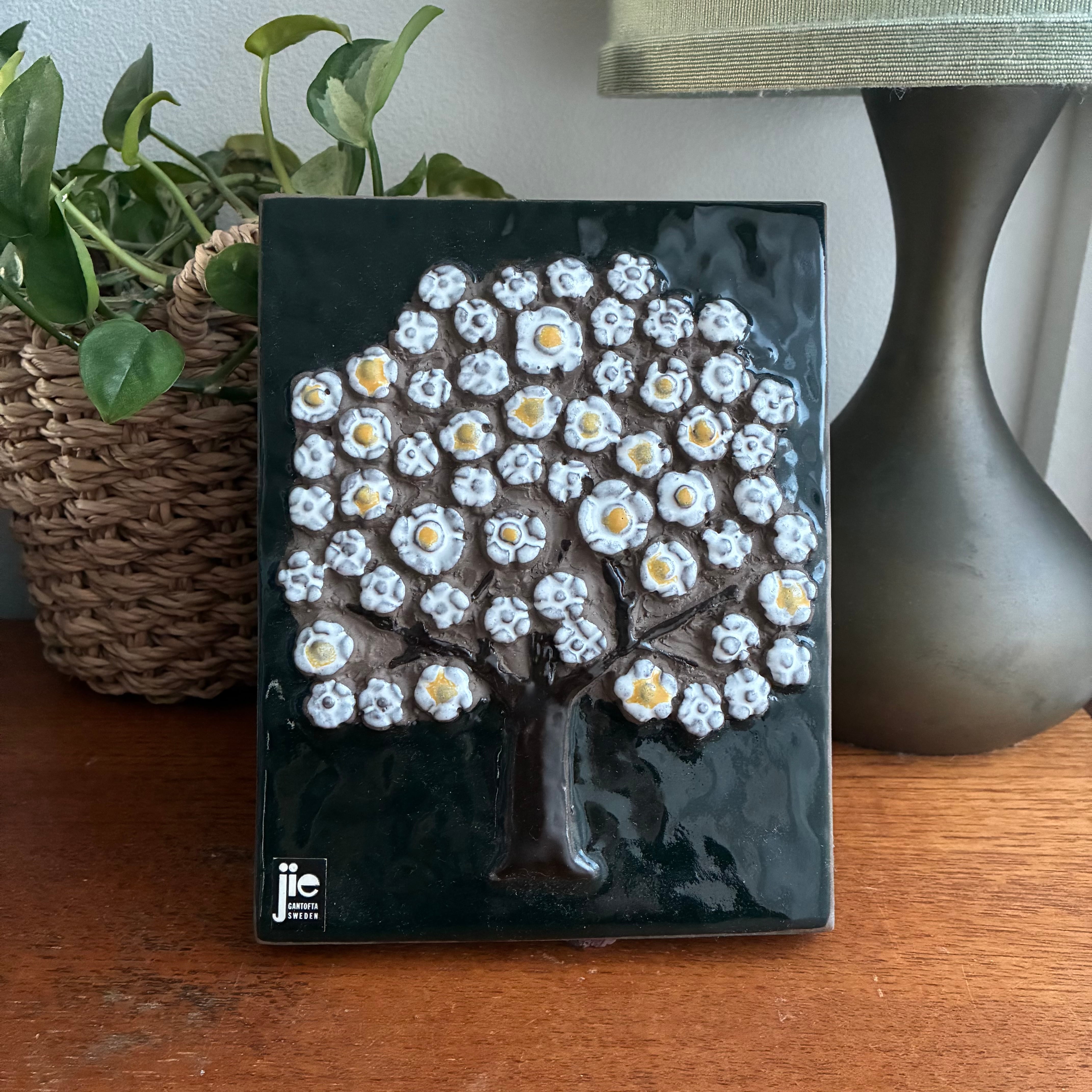 Jie Gantofta / ジイ・ガントフタ 可憐な花の咲く樹木の陶板 Gabi Citron-Tengborg 北欧ヴィンテージ