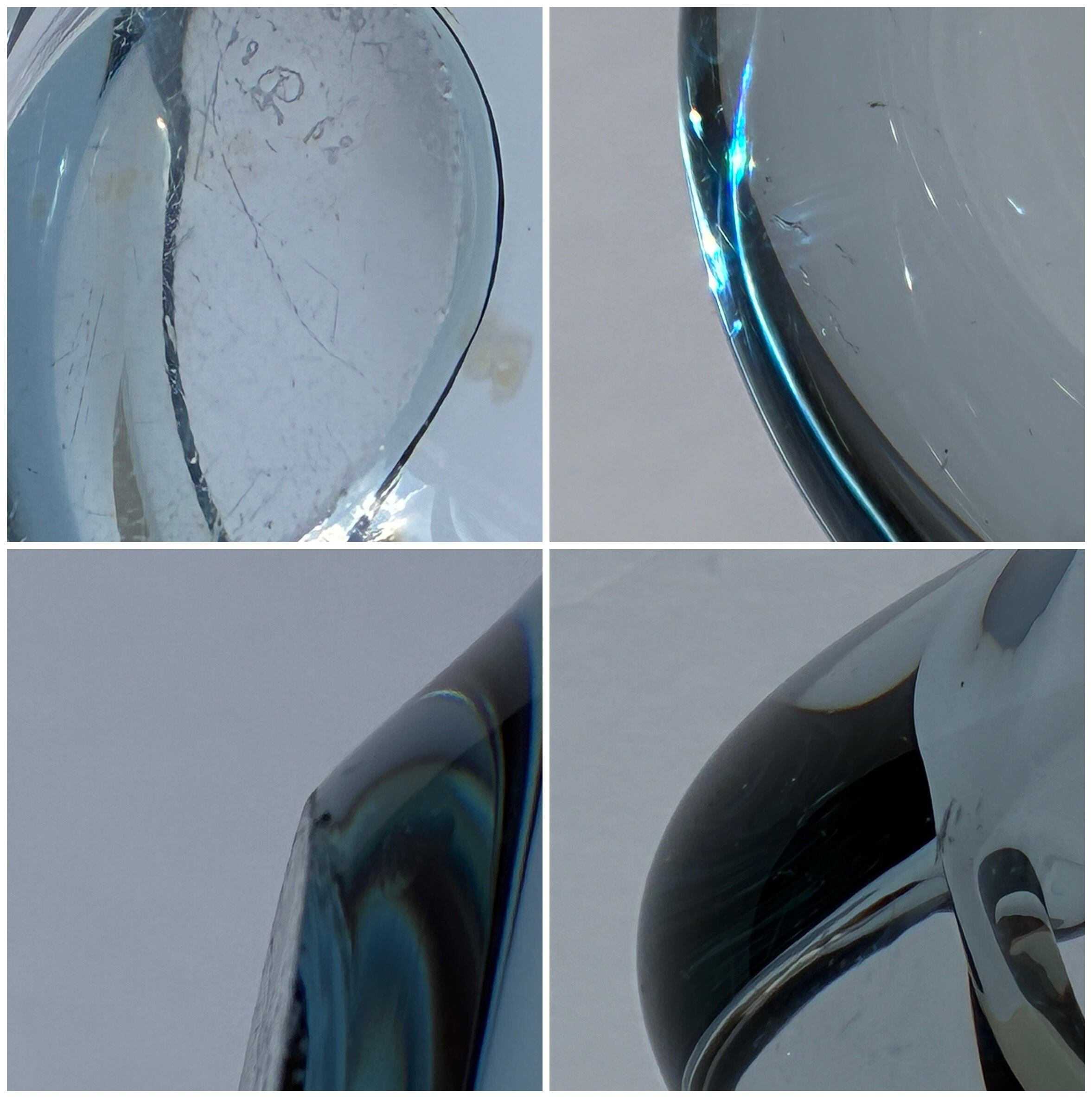 ずっしりとした厚みのあるガラス素材に、ほんのり差し色程度に添えられた薄いブルーカラーが、とても爽やかな印象です。