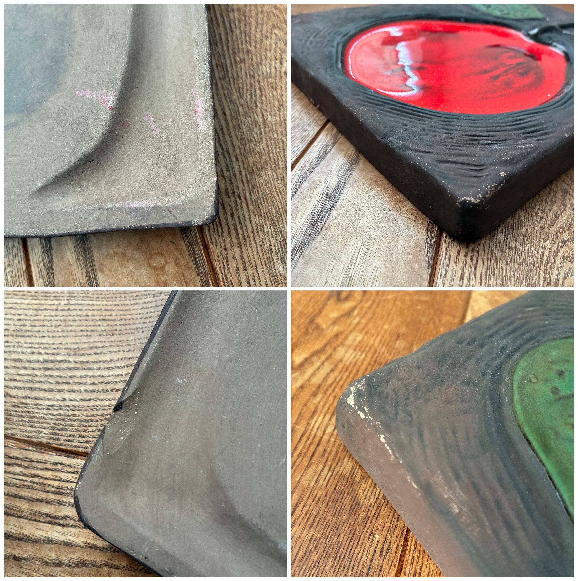 前から見た時の景観を損なうものではございませんが、裏面の右下あたりに着色汚れ、左下あたりにカケが1箇所ございます。。